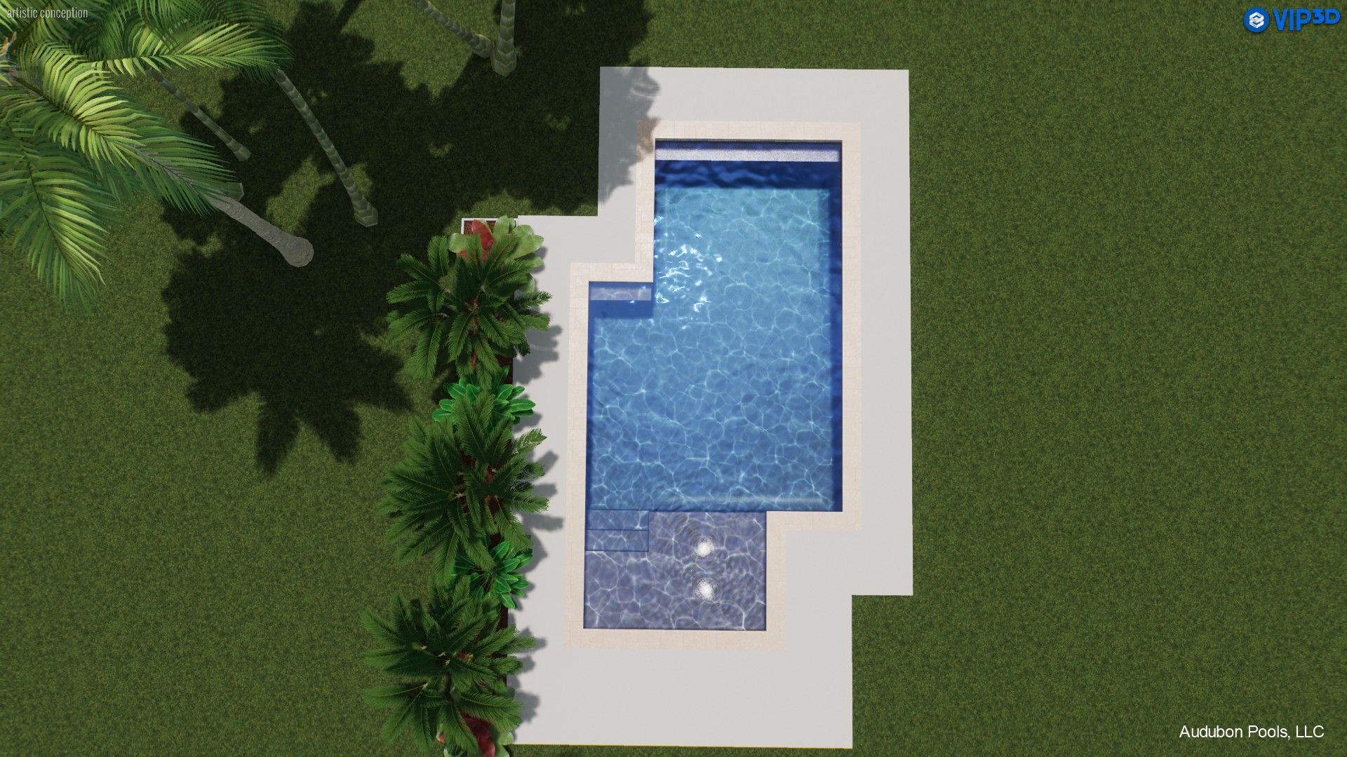 - Enjoy 400 sq. ft. of refreshing swimming space — 496 sq. ft. total with coping — complemented by 400 sq. ft. of broom-finished concrete decking for a complete backyard design.