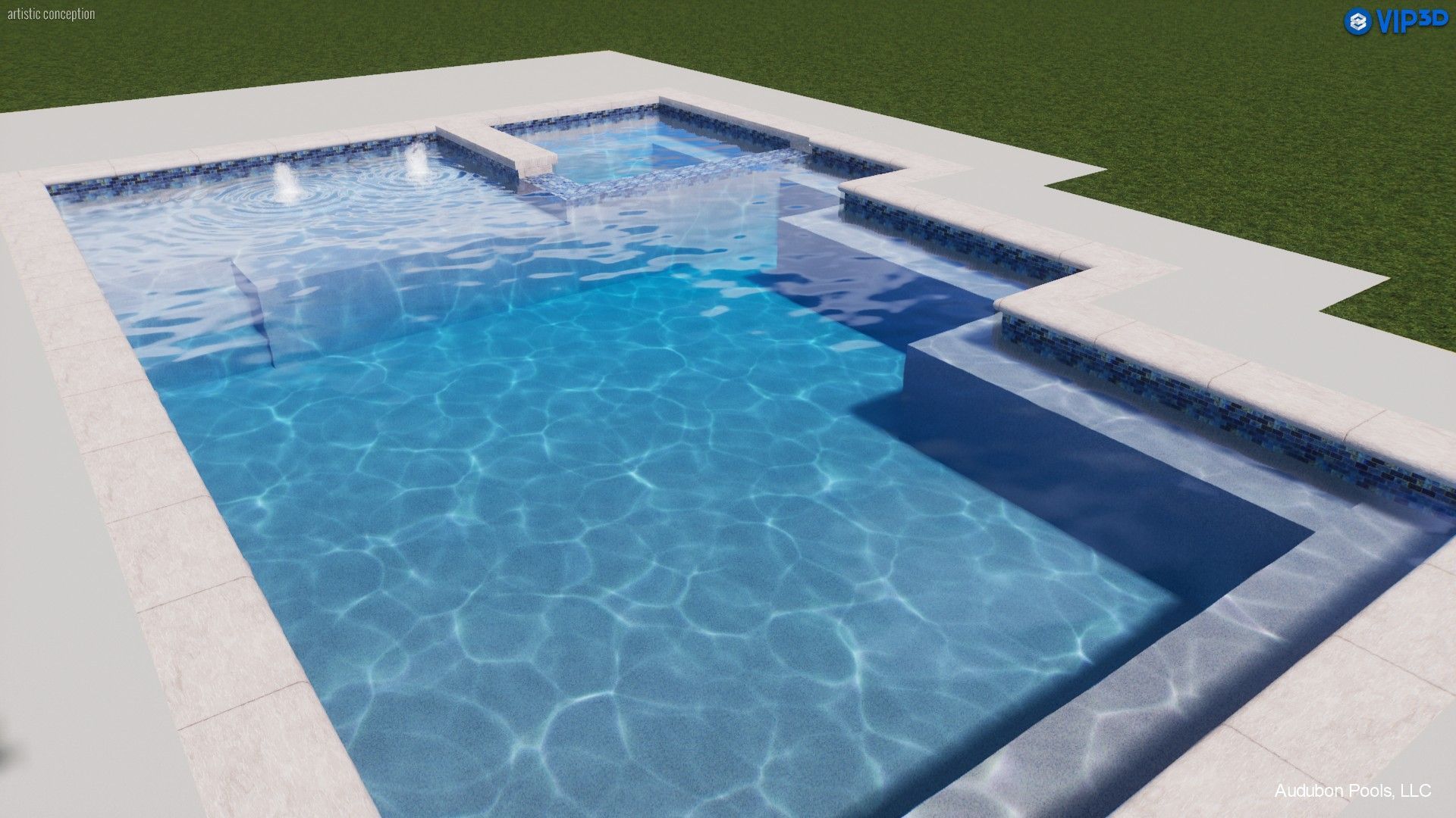 Enjoy 450 sq. ft. of refreshing swimming space — 550sq. ft. total with coping and spa— complemented by 450 sq. ft. of broom-finished concrete decking for a complete backyard design.