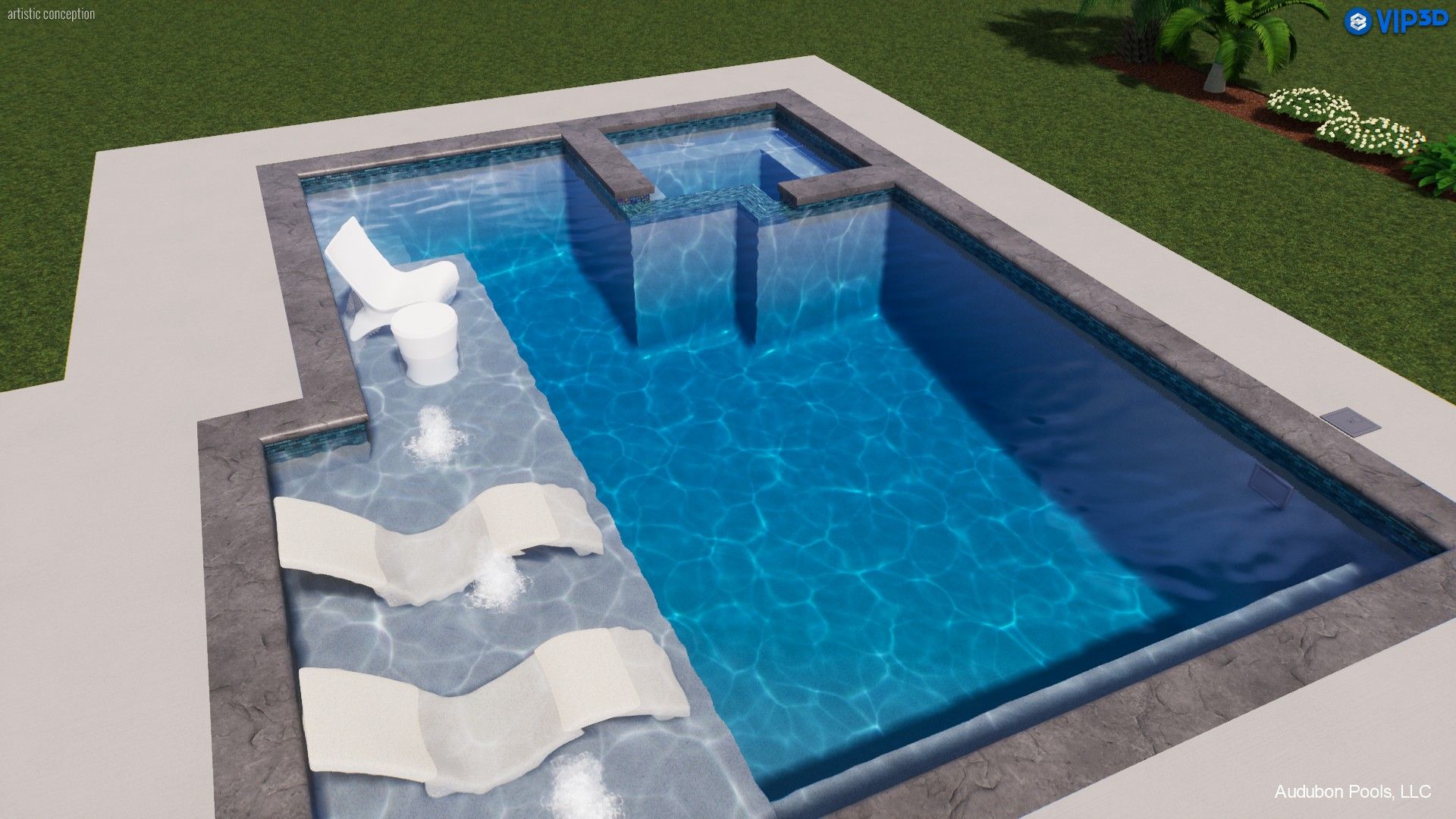 - In-pool bench seating — perfect for relaxing and socializing in the water