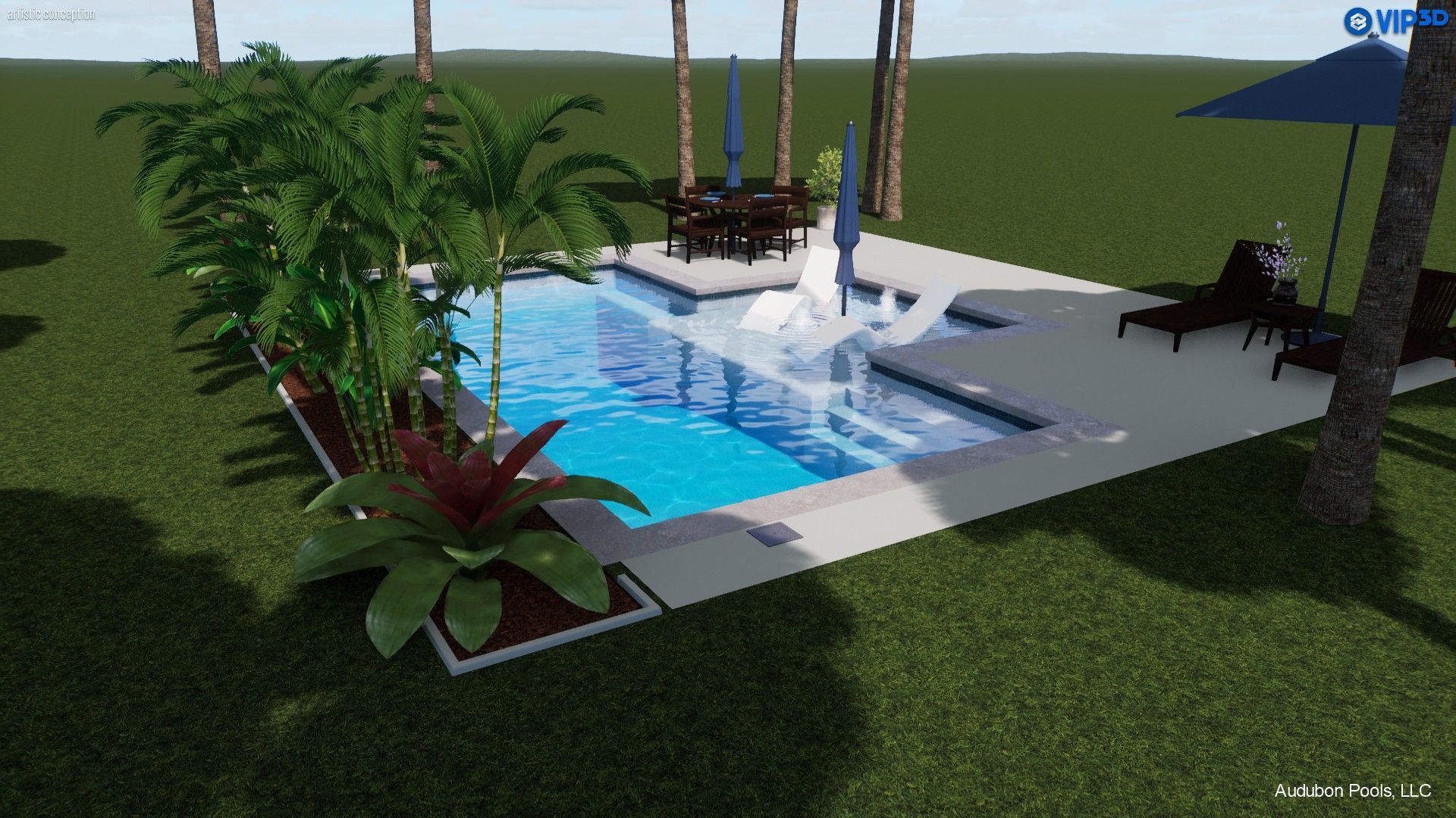 - In-pool bench seating — perfect for relaxing and socializing in the water