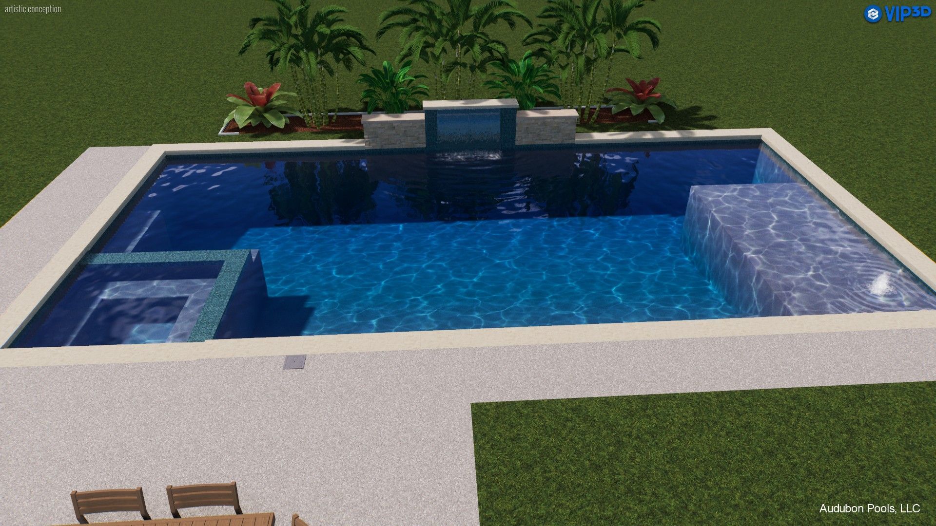 - In-pool bench seating — perfect for relaxing and socializing in the water
